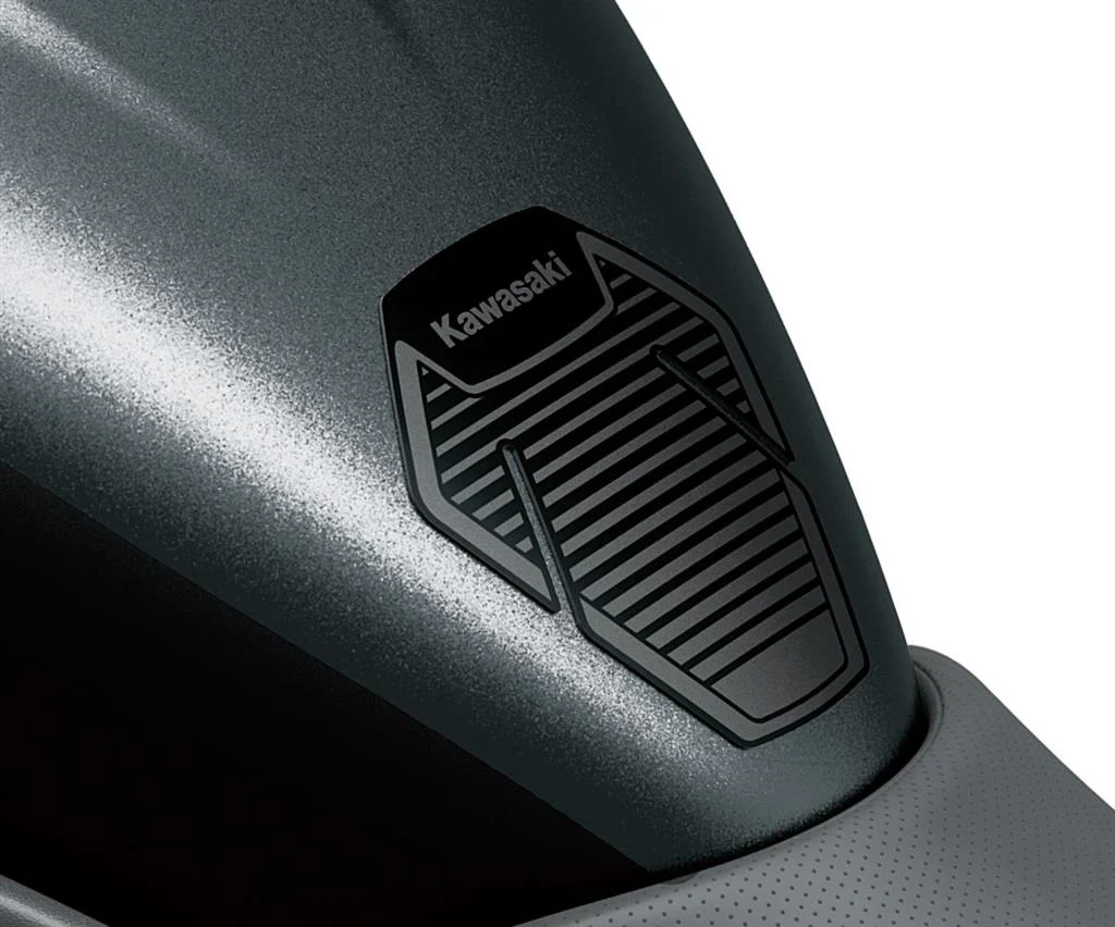 Compact black foil tank pad with Kawasaki logo to add protection against scratches. Â